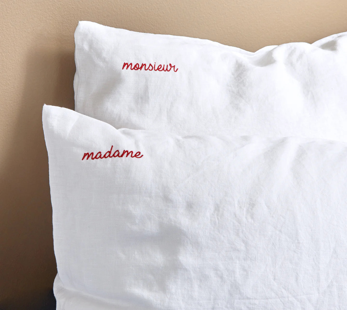 Personaliseer uw nachten door uw mooiste initialen of kleine woorden linksboven op uw kussenslopen toe te voegen. Kies uw lettertype en borduurkleur, gemaakt in Frankrijk!